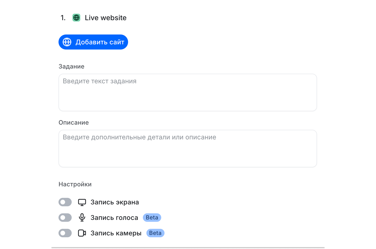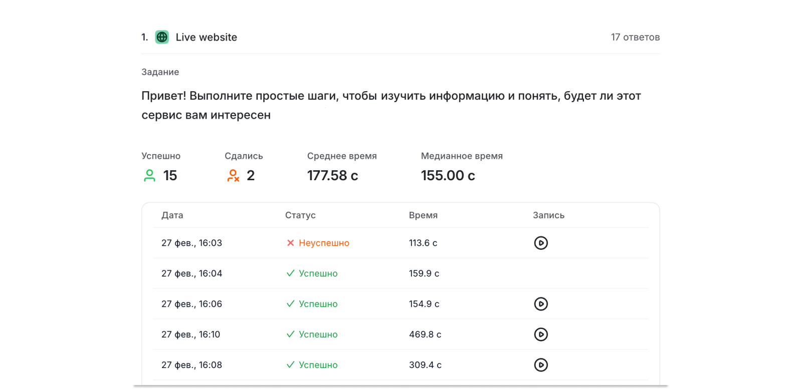 Основной потенциал Live website раскрывается в качественных исследованиях — благодаря записям экрана можно увидеть, как именно пользователи взаимодействуют с интерфейсом, что вызывает затруднения и какие шаги они предпринимают.